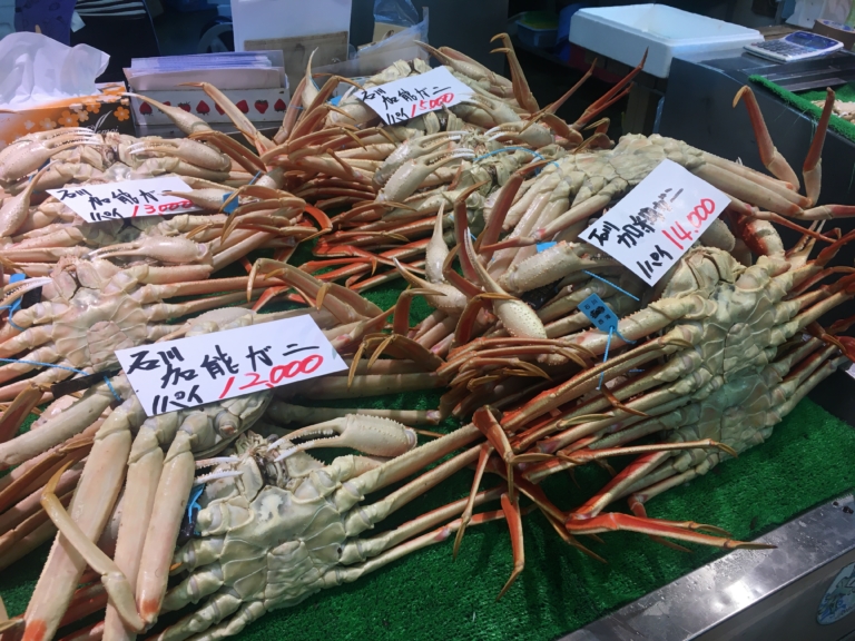 近江町市場 カニまつり【金沢市】 石川県のズワイガニ(オスの加能ガニ、メスの香箱ガニ)の漁が解禁される11月6日 近江町市場では今年も、11月11日(土)にカニまつりが開催