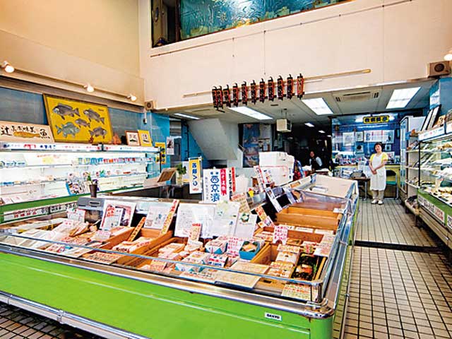 10件の鮮魚店があり、冬季は蟹も扱うので事前に確認してください。