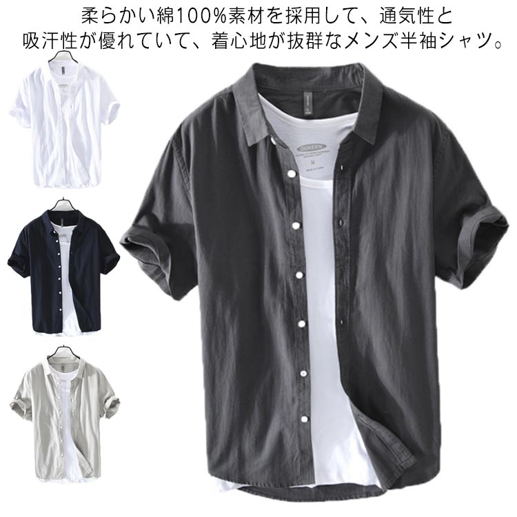 カジュアル 半袖シャツ コットン100% カジュアルシャツ 春 綿 無地 シャツ M-3XL 無地 トップス ビジネス 夏物 メンズファッション シンプル 夏 ゆったり 大きいサイズ メンズ